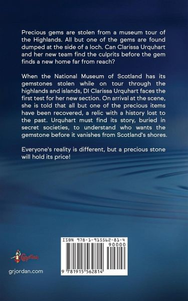 Precious gems are stolen from a museum tour of the Highlands. All but one of the gems are found dumped at the side of a loch. Can Clarissa Urquhart and her new team find the culprits before the gem finds a new home far from reach? When the National Museum of Scotland has its gemstones stolen while on tour through the highlands and islands, D.I. Clarissa Urquhart faces the first test for her new section. On arrival at the scene, she is told that all but one of the precious items have been recovered, a relic with a history lost to the past. Urquhart must find its story, buried in secret societies, to understand who wants the gemstone before it vanishes from Scotland's shores. Everyone's reality is different, but a precious stone will hold its price!