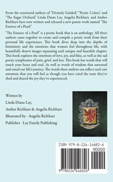 From the renowned authors of "Divinely Guided," "Poetic Colors," and "The Sugar Orchard," Linda Diane Lay, Angelia Richhart, and Amber Richhart have now written and released a new poetic work named "The Essence of a Pearl." "The Essence of a Pearl" is a poetic book that is an anthology. All three authors came together to create and compile a poetic work from their personal life experiences. This book dives deep into the depths of femininity and the emotions that women feel throughout life, with beautifully drawn images separating each unique, heartfelt chapter. This book explores the emotions of love, joy, and bliss, as well as the sad poetic symphonies of pain, grief, and loss. This book has words that will touch your heart and soul. As well as words of wisdom that surround and entail our life's journey. The words these authors use reflect such raw emotion that you will feel as though you have cried the tears, shared the joy, and encountered these life's experiences yourself. This book has so much emotion engulfed in its pages that anyone who reads the words from this book could somehow relate to their own life.