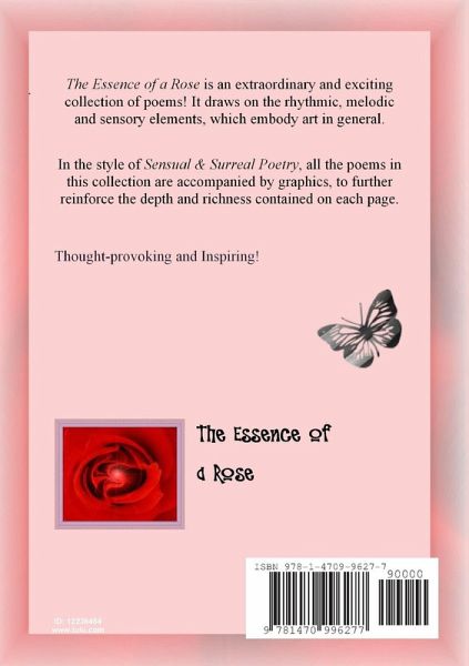 The Essence of a Rose is an extraordinary and exciting selection of poems. It draws on the rhythmic, melodic and sensory elements, which embody art in general. In the style of Sensual & Surreal Poetry, all the poems in this collection are accompanied by graphics, to further reinforce the depth and richness contained on each page. Thought provoking and Inspiring!
