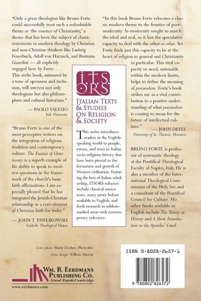 Foreword by Geoffrey Wainwright Postmodern thought has attempted to strip many traditional values and beliefs of their power, and the Christian faith is no exception. In this spiritually and intellectually wise book Bruno Forte upholds the "essence" -- the heart and meaning -- of Christianity despite the claims of the contemporary world. In the tradition of thinkers like Feuerbach, Harnack, and Guardini, Forte restates what is unique, reliable, and universal about Christianity for our current age. After outlining in broad terms the nature of postmodernity and its challenges to traditional faith, Forte proceeds, with the voice of one intimately in love with God, to present anew what lies at the heart of genuine Christianity and why it is still good news for women and men today. Among the many books on postmodernism, this one is distinct for its conscientious dialogue with postmodern culture and its clear proclamation of meaningful faith. It will interest everyone pondering the role of Christianity in contemporary life.