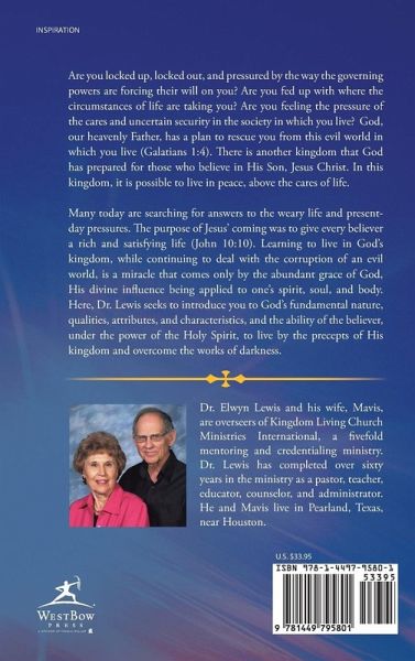 Are you locked up, locked out, and pressured by the way the governing powers are forcing their will on you? Are you fed up with where the circumstances of life are taking you? Are you feeling the pressure of the cares and uncertain security in the society in which you live? God, our heavenly Father, has a plan to rescue you from this evil world in which you live (Galatians 1:4). There is another kingdom that God has prepared for those who believe in His Son, Jesus Christ. In this kingdom, it is possible to live in peace, above the cares of life. Many today are searching for answers to the weary life and present-day pressures. The purpose of Jesus’ coming was to give every believer a rich and satisfying life (John 10:10). Learning to live in God’s kingdom, while continuing to deal with the corruption of an evil world, is a miracle that comes only by the abundant grace of God, His divine influence being applied to one’s spirit, soul, and body. Here, Dr. Lewis seeks to introduce you to God’s fundamental nature, qualities, attributes, and characteristics, and the ability of the believer, under the power of the Holy Spirit, to live by the precepts of His kingdom and overcome the works of darkness.
