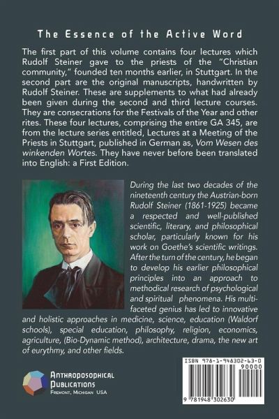 A course of 4 lectures for Priests of the Christian Community, with questions and answers. Held in Stuttgart, Germany on July 11-14, 1923, these lectures and documentary additions, encompass Part IV of Steiner's works entitled, Lectures and Courses on Christian-religious Work. Also included are several of Rudolf Steiner's original manuscripts in his own handwriting, a speech given by Steiner at the cremation of Hermann Linde, and a special note from GA# 342. This lecture series is the entirety of GA# 345. Translated by Hanna von Maltitz and edited by James D. Stewart.