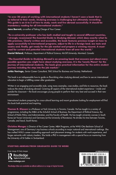 "In over 20 years of working with international students I haven't seen a book that is so tailored to their needs. Studying overseas is challenging but ultimately rewarding. This guide is an A to Z of how to study, work and live abroad successfully. It should be mandatory reading for all international students." - Jane Barrett, co-author of Taking Charge of Your Career