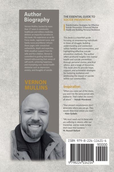 Discover ways to rise from the shadows of suicidal thoughts and strengthen your inner resilience, even if you've been facing these challenges for years. Are you searching for understanding and practical strategies to cope with the pain of suicidal thoughts or the grief of losing someone to suicide? Have you tried solutions that seem to provide temporary relief but leave you feeling more lost and isolated? Do you long for actionable guidance that blends professional advice with human stories to help you make sense of it all? If so, you're not alone. Countless individuals and professionals face these same challenges daily. The Essential Guide to Suicide Prevention unearths the power of personal resilience and community support, providing a beacon of hope in the fight against the darkness of suicide. What This Book Offers:Personal Stories: Discover the transformative power of resilience and community through the experiences of survivors and loved ones. Comprehensive View: Gain insights through a mix of scientific data and real-life experiences on suicidal ideation and prevention. Approaching Loved Ones: Receive specific advice on how to engage with a loved one who may be struggling, without causing further harm. Practical Self-Care: Explore mindfulness and resilience-building techniques to fortify your mental well-being. Professional Guidance: For educators and professionals, learn how to spot signs of suicidal ideation and provide effective support. Spirituality and Community: Understand the role of spiritual and communal ties in navigating pain and finding meaning after loss. For Military Veterans: Access tailored insights for veterans dealing with PTSD and support for their families. Men's Mental Health: Advice to help men overcome the stigma of seeking mental health support. Career Balance: Strategies for managing career pressures while dealing with suicidal thoughts. Holistic Coping Mechanisms: Tailored techniques for different life stages and situations. Community Networks: Resources for building resilient support systems and strong community networks. Cultural Understanding: Techniques to foster compassion and understanding across diverse cultural and religious contexts...and much more! Is This Book Right for You? Wondering if this book is the right fit for you? Concerned that your experience is too unique for a general guide? Many share this skepticism, yet the strategies in this book are designed to respect and address individual differences and complex personal stories. Whether you're a mental health practitioner, a survivor, a family member, or someone currently struggling, The Essential Guide to Suicide Prevention offers an inclusive approach that seeks to validate and uplift every reader. This book is not filled with complex jargon or theoretical concepts. Instead, it delivers straight-to-the-point, compassionate advice in a relatable style, ensuring that anyone-from professionals to those in distress-can benefit. If you're ready to transform pain into resilience and build a supportive community to conquer the darkness of suicide, scroll up and click "Add to Cart" now.