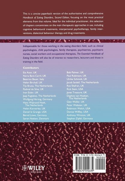 This is a concise paperback version of the authoritative and comprehensive Handbook of Eating Disorders, Second Edition, focusing on the most practical elements from that volume. Ideal for the individual practitioner, this selection of chapters concentrates on the main therapeutic approaches in use, including cognitive behavioural treatments, interpersonal psychotherapy, family interventions, dialectical behaviour therapy and drug treatments. Indispensable for those working in the eating disorders field, such as clinical psychologists, child psychologists, family therapists, psychiatrists, psychiatric nurses, social workers and occupational therapists. The Essential Handbook of Eating Disorders will also be of interest to researchers, lecturers and those in training in the field.
