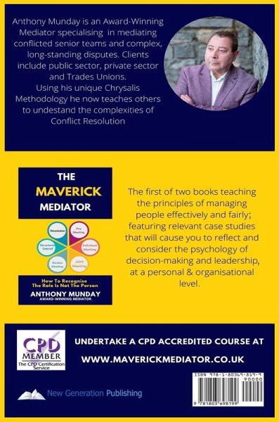 The first of two books teaching the principles of managing people effectively and fairly featuring relevant case studies that will cause you to reflect and consider the psychology of decision making and leadership at a personal and organisational level. Anthony Munday is an award-winning mediator specialising in mediating conflicted senior teams and complex, long-standing disputes. Clients include public sector, private sector and Trade Unions. Using his unique Chrysalis Methodology he now teaches others to understand the complexities of conflict resolution.