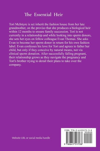 Tori McIntyre, is set to inherit the Fashion House from her late grandmother, on the proviso that she produces a biological heir within 12 months to ensure family succession. Tori is not currently in a relationship and while looking into sperm donors, she sets her eyes on fellow colleague fashion designer, Evan Thomas. She asks Evan to become her sperm donor in return for his own fashion label. Evan confesses his love for Tori and agrees to father her child but only if they conceive by natural means not via clinical sperm donation. After successfully, falling pregnant, their relationship grows as they navigate the pregnancy and Tori's brother trying to derail their plans to take over the company.