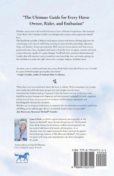 "The Ultimate Guide for Every Horse Owner, Rider, and Enthusiast" Whether you're new to the world of horses or have alifetime of experience, The EssentialHorse Book: The Complete Guide is an indispensable resource every equestrian should have. This handbook provides aholistic road map to success with horses, delving deep into the critical aspects of ahorse's well-being, focusing on mentalhealth, physiology, digestion, sleep, tack fitment, disease and nutrition. With over 60 vibrant photos and illustrations,paired with more than ahundred cited sources from the latest in equine research, this book is more than just a guide-it's a game changer. You'll find clear, practical information and insights that wil empower you to transform your knowledge into real results, giving you the confidence to make the right choices for astronger, happier, healthier horse.