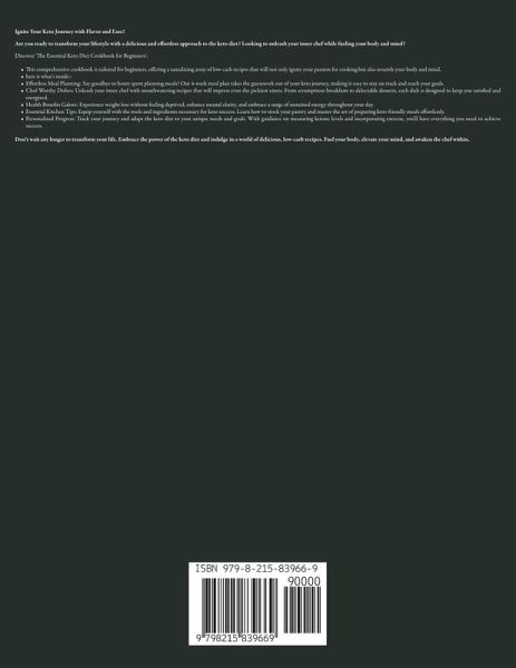 Ignite Your Keto Journey with Flavor and Ease! Are you ready to transform your lifestyle with a delicious and effortless approach to the keto diet? Looking to unleash your inner chef while fueling your body and mind? Discover 'The Essential Keto Diet Cookbook for Beginners':This comprehensive cookbook is tailored for beginners, offering a tantalizing array of low-carb recipes that will not only ignite your passion for cooking but also nourish your body and mind. here is what's inside:: Effortless Meal Planning: Say goodbye to hours spent planning meals! Our 4-week meal plan takes the guesswork out of your keto journey, making it easy to stay on track and reach your goals. Chef-Worthy Dishes: Unleash your inner chef with mouthwatering recipes that will impress even the pickiest eaters. From scrumptious breakfasts to delectable desserts, each dish is designed to keep you satisfied and energized. Health Benefits Galore: Experience weight loss without feeling deprived, enhance mental clarity, and embrace a surge of sustained energy throughout your day. Essential Kitchen Tips: Equip yourself with the tools and ingredients necessary for keto success. Learn how to stock your pantry and master the art of preparing keto-friendly meals effortlessly. Personalized Progress: Track your journey and adapt the keto diet to your unique needs and goals. With guidance on measuring ketone levels and incorporating exercise, you'll have everything you need to achieve success. Don't wait any longer to transform your life. Embrace the power of the keto diet and indulge in a world of delicious, low-carb recipes. Fuel your body, elevate your mind, and awaken the chef within.
