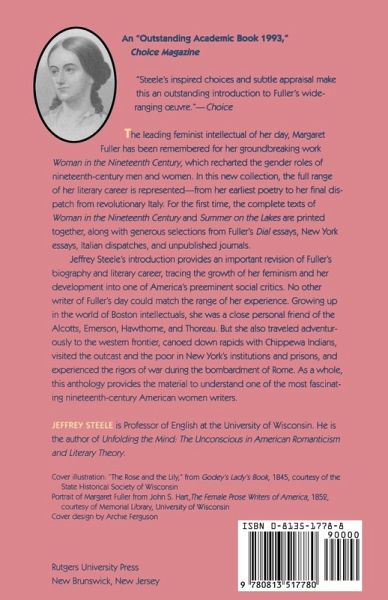 Acknowledgements Introduction Notes to Introduction Selected Bibliography Chronology A Note on the Text Self-Definitions, 1835-42 Autobriographical Romance The Magnolia of Lake Pontchartrain Yuca Filamentosa Leila Bettine Brentanto and Her Friend Gunderode Summer on the Lakes 1844 Poetry Woman in the Nineteenth Century New-York Tribune Reviews and Essays Emerson's Essays Our City Charities Prevalent Idea that Politeness is too great a luxury to be given to the poor The Wrongs of American Women. The Duty of American Women. What fits a man to be a voter? Is it to be white within, or white without? Farewell Things and Thoughts in Europe Explanatory Notes