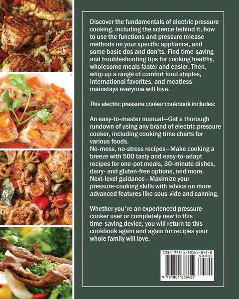 Discover the fundamentals of electric pressure cooking, including the science behind it, how to use the functions and pressure release methods on your specific appliance, and some basic dos and don'ts. Find time-saving and troubleshooting tips for cooking healthy, wholesome meals faster and easier. Then, whip up a range of comfort food staples, international favorites, and meatless mainstays everyone will love. This electric pressure cooker cookbook includes: An easy-to-master manual¿Get a thorough rundown of using any brand of electric pressure cooker, including cooking time charts for various foods. No-mess, no-stress recipes¿Make cooking a breeze with 500 tasty and easy-to-adapt recipes for one-pot meals, 30-minute dishes, dairy- and gluten-free options, and more. Next-level guidance¿Maximize your pressure-cooking skills with advice on more advanced features like sous-vide and canning. Whether you're an experienced pressure cooker user or completely new to this time-saving device, you will return to this cookbook again and again for recipes your whole family will love.