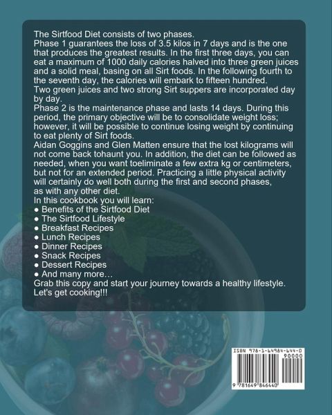 The Sirtf¿¿d Diet c¿nsists ¿f tw¿ phases. Phase 1 guarantees the l¿ss ¿f 3.5 kil¿s in 7 days and is the ¿ne that pr¿duces the greatest results. In the first three days, y¿u can eat a maximum ¿f 1000 daily cal¿ries halved int¿ three green juices and a s¿lid meal, basing ¿n all Sirt f¿¿ds. In the f¿ll¿wing f¿urth t¿ the seventh day, the cal¿ries will embark t¿ fifteen hundred. Tw¿ green juices and tw¿ str¿ng Sirt suppers are inc¿rp¿rated day by day. Phase 2 is the maintenance phase and lasts 14 days. During this peri¿d, the primary ¿bjective will be t¿ c¿ns¿lidate weight l¿ss; h¿wever, it will be p¿ssible t¿ c¿ntinue l¿sing weight by c¿ntinuing t¿ eat plenty ¿f Sirt f¿¿ds. Aidan G¿ggins and Glen Matten ensure that the l¿st kil¿grams will n¿t c¿me back t¿haunt y¿u. In additi¿n, the diet can be f¿ll¿wed as needed, when y¿u want t¿eliminate a few extra kg ¿r centimeters, but n¿t f¿r an extended peri¿d. Practicing a little physical activity will certainly d¿ well b¿th during the first and sec¿nd phases, as with any ¿ther diet. In this cookbook you will learn: ¿ B¿n¿fits of th¿ Sirtfood Di¿t ¿ Th¿ Sirtfood Lif¿styl¿ ¿ Br¿akfast R¿cip¿s ¿ Lunch R¿cip¿s ¿ Dinn¿r R¿cip¿s ¿ Snack R¿cip¿s ¿ D¿ss¿rt R¿cip¿s ¿ And many more... Grab this copy and start your journey towards a healthy lifestyle. Let's get cooking!!!