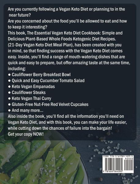 Are you currently following a Vegan Keto Diet or planning to in the near future? Are you concerned about the food you'll be allowed to eat and how to keep it interesting? This book, The Essential Vegan Keto Diet Cookbook: Simple and Delicious Plant-Based Whole Foods Ketogenic Diet Recipes. (21-Day Vegan Keto Diet Meal Plan), has been created with you in mind, so that finding success with the Vegan Keto Diet comes easy. Inside, you'll find a range of mouth-watering dishes that are quick and easy to prepare, but offer amazing taste at the same time, including: ¿ Caulifl¿wer Berry Breakfast B¿wl ¿ Quick and Easy Cucumber T¿mat¿ Salad ¿ Ket¿ Vegan Empanadas ¿ Caulifl¿wer Steaks ¿ Ket¿ Vegan Thai Curry ¿ Gluten-Free Nut-Free Red Velvet Cupcakes ¿ And many more... Also inside the book, you'll find all the information you'll need on Vegan Keto Diet, and with this book, you can make your life easier, while cutting down the chances of failure into the bargain! Get your copy NOW!