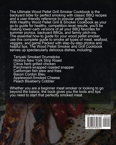 The Ultimate Wood Pellet Grill Smoker Cookbook is the backyard bible for perfect smoking with classic BBQ recipes and a user-friendly reference to popular pellet grills. With Healthy Wood Pellet Grill & Smoker Cookbook as your go-to guide for healthy, competition-level results, you'll be making lower-carb versions of all your BBQ favorites for summer picnics, backyard BBQs, and family pitch-ins. The essential how-to guide for your wood pellet smoker, use this complete guide to smoke all types of meat, seafood, veggies, and game.Packed with step-by-step photos and helpful tips, The Wood Pellet Smoker and Grill Cookbook serves up spectacularly delicious dishes, including:¿Teriyaki Smoked Drumsticks ¿Hickory New York Strip Roast ¿Citrus herb grilled chicken ¿Parchment-wrapped roasted snapper ¿Californian fish stew and fries ¿Bacon Cordon Bleu ¿Applewood-Smoked Cheese ¿Peach Blueberry Cobbler Whether you are a beginner meat smoker or looking to go beyond the basics, the book gives you the tools and tips you need to start that perfectly smoked meat.