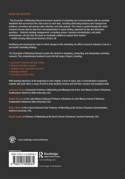 Identifying and assessing the ways in which changes in the marketing mix affect consumer behavior is key to a successful marketing strategy. The Essentials of Marketing Research guides the student in designing, conducting and interpreting marketing research. This comprehensive textbook covers the full range of topics, including: Secondary research and data mining Internet marketing research Qualitative and exploratory research Statistical analysis Marketing research ethics With learning objectives at the beginning of each chapter, a host of cases and a comprehensive companion website, this book offers a range of tools to help students develop and test their research and analytical skills.