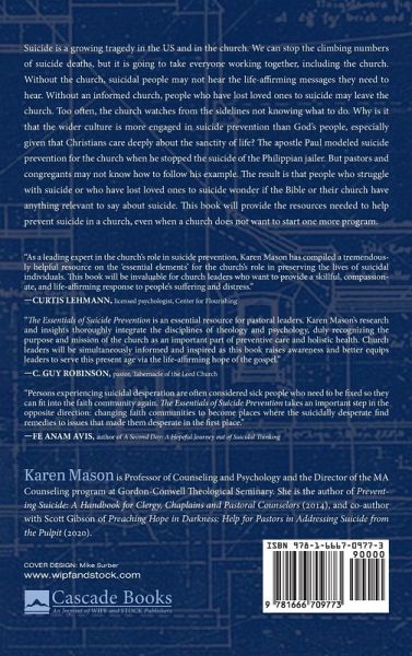 Suicide is a growing tragedy in the US and in the church. We can stop the climbing numbers of suicide deaths, but it is going to take everyone working together, including the church. Without the church, suicidal people may not hear the life-affirming messages they need to hear. Without an informed church, people who have lost loved ones to suicide may leave the church. Too often, the church watches from the sidelines not knowing what to do. Why is it that the wider (secular) culture is more engaged in suicide prevention than God's people, especially given that Christians care deeply about the sanctity of life? The apostle Paul modeled suicide prevention for the church when he stopped the suicide of the Philippian jailer. But pastors and congregants may not know how to follow his example. The result is that people who struggle with suicide or who have lost loved ones to suicide wonder if the Bible or their church have anything relevant to say about suicide. This book will provide the resources needed to help prevent suicide in a church, even when a church does not want to start one more program.