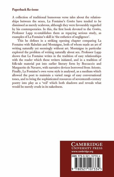 In this book devoted to the Contes, Professor Lapp re-establishes them as repaying serious study, as examples of La Fontaine's skill in 'the esthetics of negligence'.