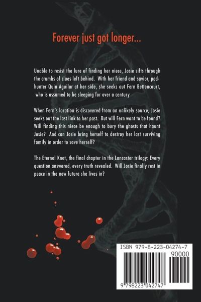 Forever Just Got Longer... Unable to resist the lure of finding her niece, Josie sifts through the crumbs of clues left behind. With her friend and savior, pod-hunter Quin Aguilar at her side, she seeks out Fern Bettencourt, who is assumed to be sleeping for over a century. When Fern's location is discovered from an unlikely source, Josie seeks out the last link to her past. But will Fern want to be found? Will finding this niece be enough to bury the ghosts that haunt Josie? And can Josie bring herself to destroy her last surviving family in order to save herself? The Eternal Knot, the final chapter in the Lancaster trilogy: Every question answered, every truth revealed. Will Josie finally rest in peace in the new future she lives in?