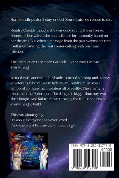 "Time is unraveling. The only people who can stop it already retired." Kendra Cassidy never expected to command a starship again. Neither did her wives-Admiral Aiyana Cassidy and Captain Minerva Cassidy. After centuries of battles, betrayals, and rebuilding civilization from the ashes of war, they were supposed to be done. But time has other plans. A cryptic warning from the distant past leads to an impossible choice: intervene in the earliest days of time travel-or let the entire timeline collapse. With a fracturing universe, a resurgent alien threat, and paradoxes piling on like drinks at a reunion, the crew of the Dreamer must return to action. And they're bringing everyone. Armed with ancient tech, a retrofitted warship, and a deep bench of grizzled veterans, Kendra and her family must navigate betrayal, bureaucracy, and the occasional quantum headache to stop a cascade failure of reality itself. As old flames rekindle and old wounds resurface, each choice reverberates across centuries-and not everyone will make it back. Because this isn't just a mission to fix time. This is their last stand. THE ETERNITY PROTOCOL DUOLOGY is an epic queer space opera filled with fierce women in command, time-traveling AIs, and the kind of found family that refuses to let the universe die without a fight. If you like: * Big ships, bigger stakes, and unapologetic heart * Wives who strategize in bed and on the bridge * Starfleet-level tech with Firefly-level crew dynamics * Queer heroes who've seen it all and still choose hope ...then come aboard. Time is running out-but the crew of the Dreamer doesn't give up that easily. Perfect for fans of The Expanse, Star Trek: Picard, and The Long Way to a Small, Angry Planet. Some endings aren't endings at all. Some are just the beginning of forever.