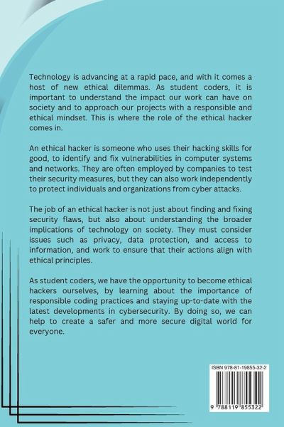 In today's digital age, technology plays a vital role in almost every aspect of our lives. From communication and education to healthcare and entertainment, technology has revolutionized the way we live and work. However, just like any other tool, it can be used for both positive and negative purposes. This is where the importance of technology ethics comes into play. Technology ethics refers to the moral principles and guidelines that govern the use of technology. It involves understanding the impact of technology on individuals, society, and the environment, and making responsible choices that align with ethical values. As students and future coders, it is crucial to grasp the significance of technology ethics and integrate it into our work and decision-making processes. One of the primary reasons why technology ethics is essential is because it helps protect individuals' privacy and security. In today's interconnected world, the collection and use of personal data have become widespread. Ethical considerations ensure that individuals' information is handled with care, and their privacy is respected. By adhering to ethical practices, we can prevent unauthorized access, data breaches, and other cybercrimes that compromise people's sensitive information. Furthermore, technology ethics helps promote fairness and equality. As the digital divide widens, it is crucial to ensure that everyone has equal access to technology and its benefits. Ethical considerations help prevent discrimination and bias in the development and deployment of technology. By designing inclusive and accessible technologies, we can bridge the gap between different socio-economic backgrounds and create a more equitable society. Additionally, technology ethics encourages sustainability and environmental responsibility. The production and disposal of technology have significant environmental impacts. Ethical practices prioritize the use of eco-friendly materials, energy-efficient designs, and responsible e-waste management. By considering the environmental consequences of our technological choices, we can minimize our carbon footprint and contribute to a greener future. Moreover, technology ethics fosters transparency and accountability. As creators and users of technology, it is important to understand the potential consequences of our actions. Ethical considerations help us take responsibility for the outcomes of our technological advancements. By being transparent about the intentions and potential risks associated with technology, we can build trust among users and ensure that our innovations serve the greater good.
