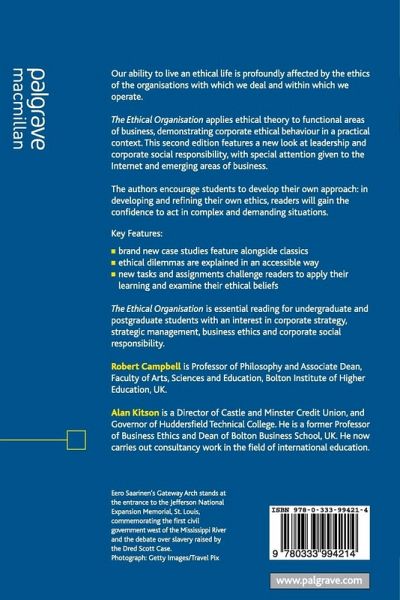 The Ethical Organisation applies ethical theory to functional areas of business, demonstrating corporate ethical behaviour in a practical context. The second edition features a new look at leadership and corporate social responsibility, with special attention given to the internet and emerging areas of business.