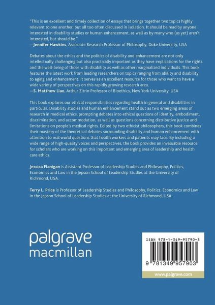 This book explores our ethical responsibilities regarding health in general and disabilities in particular. Disability studies and human enhancement stand out as two emerging areas of research in medical ethics, prompting debates into ethical questions of identity, embodiment, discrimination, and accommodation, as well as questions concerning distributive justice and limitations on people's medical rights. Edited by two ethicist philosophers, this book combines their mastery of the theoretical debates surrounding disability and human enhancement with attention to real world questions that health workers and patients may face. By including a wide range of high-quality voices and perspectives, the book provides an invaluable resource for scholars who are working on this important and emerging area of leadership and health care ethics.