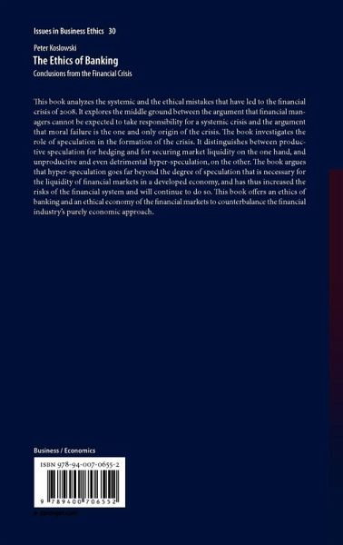 The book analyzes the systemic and the ethical mistakes that led to the crisis. It keeps the middle ground between excusing all failures by the argument of a systemic crisis not to be taken responsibility for by the financial managers and the moralistic reproach that only moral failure is at the origin of the crisis. It investigates the role of speculation in the formation of the crisis and distinguishes between productive speculation for hedging and for securing market liquidity on the one hand, and unproductive and even detrimental hyper-speculation going far beyond of the degree of speculation that is necessary in a developed economy for the liquidity of financial markets, on the other hand. Hyper-speculation has increased the risks of the financial system and is still doing so.