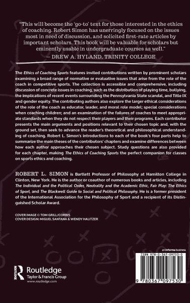 The Ethics of Coaching Sports features invited contributions written by prominent scholars examining a broad range of normative or evaluative issues that arise from the role of the coach in competitive sports. The collection is accessible and comprehensive, including discussion of concrete issues in coaching.