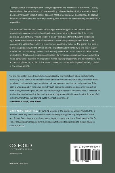 Therapists once promised patients "Everything you tell me will remain in this room." Today, they can keep that promise only if they are willing to break the laws that now require them to disclose information without patient consent. Most avoid such civil disobedience by placing limits on confidentiality; but ethically speaking, this 'conditional' confidentiality can be difficult to practice. The Ethics of Conditional Confidentiality: A Practice Model for Mental Health Professionals is a guidebook designed to help therapists and other mental health professionals navigate the ethical and legal maze surrounding confidentiality. At its core is a practical Confidentiality Practice Model-a step-by-step guide for clarifying the ethical and legal issues that make the ethics of conditional confidentiality so complicated. Ethics codes represent the 'ethical floor,' which is the minimum standard of behavior about confidentiality. The goal in this book is to encourage reaching for the 'ethical ceiling,' by protecting confidentiality to the extent legally possible and not disclosing patients' confidences just because certain laws would allow them to be disclosed. The Ethics of Conditional Confidentiality demystifies confidentiality for therapists, clinical supervisors, educators, ethics consultants, attorneys who represent mental health professionals, clinicians, and administrators, and is an ideal supplemental ethics text for graduate courses. It is also useful for establishing confidentiality policies in any clinical setting and training program.