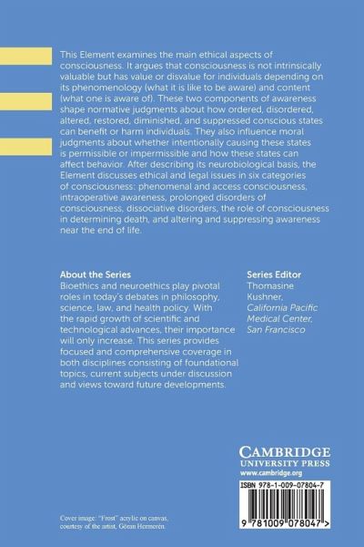 This Element comprehensively analyses and discusses normative aspects of consciousness that have been neglected or only partly examined by philosophers and neuroscientists.