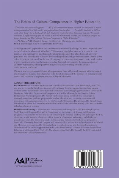 This new book presents both research (qualitative, quantitative, and mixed-design) and conceptual chapters about the ethical factors to be considered in teaching, administration, and professional practice in higher education settings. The book includes recent research-based ideas in the field of higher education. Topics include cultural competencies for higher education faculty, professionals, and administrators, such as use of language in communicating concepts to students for whom English is not a first language, avoiding imposition of bias, encouraging exposition of perspective, and ethical practices for professionals working with the diverse environments and populations in higher education settings. This work is particularly important since becoming informed on the latest approaches and ideologies is an essential component of both professional preparation and continuing professional development of faculty, professionals, and administrators in higher education. Currently, education practitioners struggle with finding time for professional development and ways to inform themselves of the latest research. This volume will help education practitioners keep abreast of the most important recent research. As college student populations and environments continually change, so must the practices of the professionals who work with them. This volume highlights some of the most recent practices and perspectives in ethics and cultural competence for all college and university personnel. This volume is unique and valuable because other books have addressed culturally competent ethical practices for discrete professions within higher education, no single work has a collection of writings about ethical and culturally competent practices for a variety of the professions in higher education.