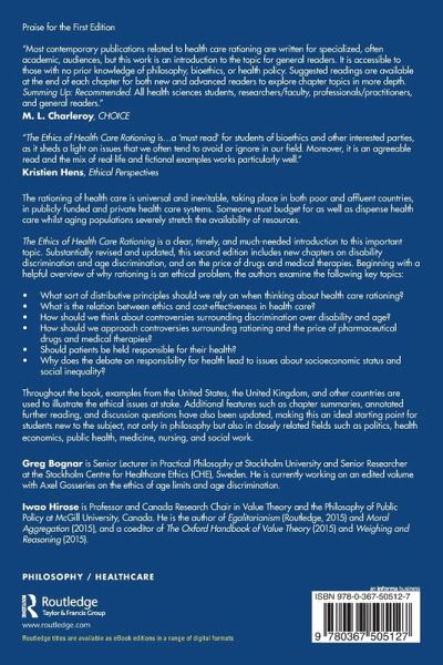 'Bognar and Hirose illuminate and make accessible the most pressing and entrenched controversies in health care rationing. This book spans political philosophy, health economics and bioethics, grounding arguments in vividly described cases. It delivers complex ideas in a relaxed style perfectly suited to drawing us all in to a long overdue common inquiry.' - Monique Jonas, University of Auckland, New Zealand