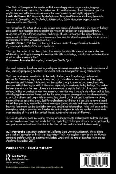 The book provides an introduction to the study of ethics, moral psychology, and ancient philosophy. Examining key themes of love, such as unconditional love, romantic love, anger, desperation, and fairness, this book offers the reader a way to exercise and strengthen their personal critical thinking on ethical dilemmas, especially in relation to loving feelings. The author believes that ethics is the heart of love in the same way as logic is the brain of reasoning; we do not need ethics to love but we can love in a much healthier way if we train our ethical skills to love. After laying the theoretical framework for the book, chapters are organized into themes relating to ethical problems and begin with an exemplary piece from Greek and Latin literature. Using these writings as a starting point, Susi Ferrarello discusses whether it is possible to have a sound ethical theory of love, especially in cases relating to justice, despair, and rage, and demonstrates how this framework can be applied in new and established relationships. Filled with case studies throughout, spiritual exercises are listed at the end of chapters to help the reader increase their understanding of love and their ethical choices surrounding emotional dilemmas.