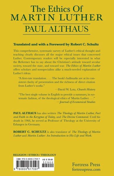 This comprehensive, systematic survey of Luther's ethical thought and teaching clearly discusses all the major ethical issues that concerned Luther. Contemporary readers will be especially interested in what the Reformer has to say about the Christian's attitude toward secular society, toward the state, and toward war. The Ethics of Martin Luther offers scholars and nonspecialists alike a much-needed explanation of Luther's ideas.