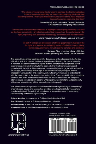 'The ethics of researching the far right is perhaps the first investigation into the moral responsibility we have in documenting the threat that fascism presents. This expertly edited volume is one of the most important interventions ever made into this field.' >'A timely and much needed collection. It highlights the ongoing necessity - as well as the huge complexity - of reflective and critical research on the contemporary far right, especially as it becomes increasingly normalised and mainstreamed.' >'At last! A straight-on discussion of ethical quagmires in studies of the far right, and a guide to navigating issues of political impact, safety, terminology, and more. A must-read for scholars and students.' >This book offers a critical starting point for discussions on how to research the far right ethically, a topic that raises a number of urgent issues. Rejecting the idea of neutrality in research, the collection makes it explicit that this research is always political. Lived experience and reflexivity are key to this book, whether it is the many years spent grappling with the ethical dilemmas posed by researching and engaging with and against the far right, how to simply start in light of the practical and psychological barriers imposed by various actors and ourselves, or how to remain in service to and solidarity with the communities at the sharp end of such politics. Beyond explicitly ethical questions, this book also offers a critical intervention into the field of research on the far right to address issues such as racism, sexism, white supremacy, colonialism, and positionality, which must be core to any ethical approach to social research. This collection makes a practical contribution to researching the far right, and the range of contributors, issues, and approaches provide a broad applicability for researchers broadly understood. As such, it will be valuable to anyone interested in researching, understanding, and combating the far right.