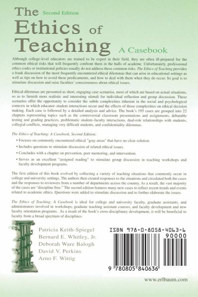 Contents: Preface. Introduction. Part I: The Classroom Ambiance. Instructors' Classroom Policies. Student Deportment in the Classroom. Part II: The Classroom Learning Experience. Instructors' Presentation Style and Content. Required In-Class Learning Activities. Part III: Assessments of Students. Testing and Other Academic Evaluations. Grading Methods. Feedback to Students. Writing Reference Letters for Students. Biased Treatment of Students. Academic Dishonesty. Part IV: Outside the Classroom. Availability to Students. Student-Faculty Interactions. Part V: Relationships in Academia. Multiple Role Relations and Conflicts of Interest. Interprofessional Relations. Exploitation of Students. Discrimination. Manipulative Students and Instructors. Supervising, Advising, and Collaboration With Students. Part VI: Responsibilities to Students and Colleagues. Instructor Competency. Confidentiality Issues. Political and Public Statements. Responsibilities to the Institution. Afterword: Prevention and Peer Intervention.