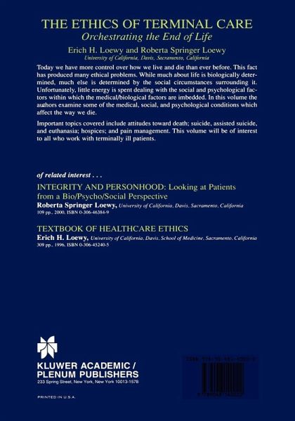 Today we have more control over how we live and how we die than we ever had before. This fact has produced many ethical problems. While much about life is biologically determined, much else is determined by the social circumstances surrounding it. Unfortunately, little energy is spent dealing with the social and psychological factors within which the medical/biological factors are imbedded. In this volume the authors examine some of the medical social and psychological conditions which affect the way we die.