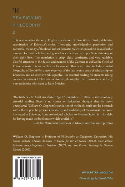 "Bonhöffer's Die Ethik des stoikers Epictet, published in 1894, is still absolutely essential reading. There is no corner of Epictetus's thought that he leaves unexplored. William O. Stephens's translation of the book could not be bettered: with a fluent pen, he preserves the clarity and readability of the original. Everyone interested in Epictetus, from professional scholars to Modern Stoics, is in his debt for having made the book more widely available."-Robin Waterfield, translator of Marcus Aurelius and Epictetus