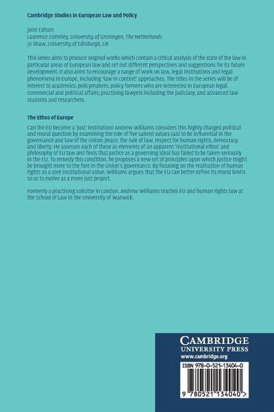 Can the EU become a 'just' institution? Andrew Williams considers this highly charged political and moral question by examining the role of five salient values said to be influential in the governance and law of the Union: peace, the rule of law, respect for human rights, democracy, and liberty. He assesses each of these as elements of an apparent 'institutional ethos' and philosophy of EU law and finds that justice as a governing ideal has failed to be taken seriously in the EU. To remedy this condition, he proposes a new set of principles upon which justice might be brought more to the fore in the Union's governance. By focusing on the realisation of human rights as a core institutional value, Williams argues that the EU can better define its moral limits so as to evolve as a more just project.