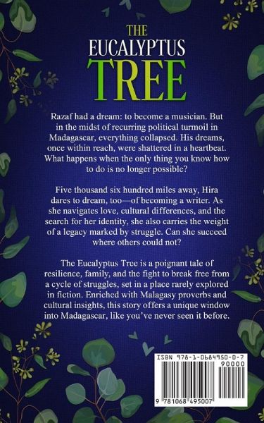 Razaf had a dream: to become a musician. But in the midst of recurring political turmoil in Madagascar, everything collapsed. His dreams, once within reach, were shattered in a heartbeat. What happens when the only thing you know how to do is no longer possible? Five thousand six hundred miles away, Hira dares to dream, too-of becoming a writer. As she navigates love, cultural differences, and the search for her identity, she also carries the weight of a legacy marked by struggle. Can she succeed where others could not? The Eucalyptus Tree is a poignant tale of resilience, family, and the fight to break free from a cycle of struggles, set in a place rarely explored in fiction. Enriched with Malagasy proverbs and cultural insights, this story offers a unique window into Madagascar, like you've never seen it before.