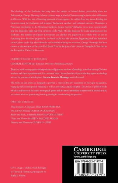 The theology of the Eucharist has long been the subject of heated debate, particularly since the Reformation. George Hunsinger's book explores ways in which Christians might resolve their differences in this area. With the aim of fostering ecumenical convergence, he tackles three key issues dividing the churches about the Eucharist: real presence, Eucharistic sacrifice, and ordained ministry. Hunsinger, a Protestant theologian in the Reformed tradition, brings Eastern Orthodox views more systematically into the discussion than has been common in the West. He also discusses the social significance of the Eucharist. His detailed conclusion summarizes and clarifies the argument as a whole with an eye to explaining how the views proposed in the book could lead the churches, beginning with the Reformed church, closer to the day when obstacles to Eucharistic sharing are overcome. George Hunsinger has been chosen as the recipient of the 2010 Karl Barth Prize by the jury of the Union of Evangelical Churches in the Evangelical Church in Germany.