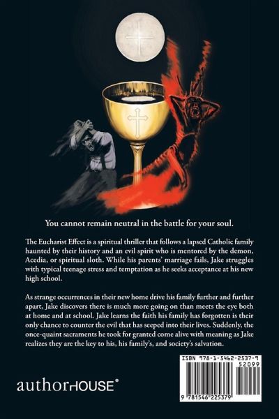 You cannot remain neutral in the battle for your soul. The Eucharist Effect is a spiritual thriller that follows a lapsed Catholic family haunted by their history and an evil spirit who is mentored by the demon, Acedia, or spiritual sloth. While his parents’ marriage fails, Jake struggles with typical teenage stress and temptation as he seeks acceptance at his new high school. As strange occurrences in their new home drive his family further and further apart, Jake discovers there is much more going on than meets the eye both at home and at school. Jake learns the faith his family has forgotten is their only chance to counter the evil that has seeped into their lives. Suddenly, the once-quaint sacraments he took for granted come alive with meaning as Jake realizes they are the key to his, his family’s, and society’s salvation.