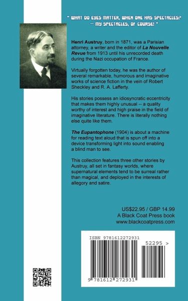 Henri Austry, born in 1871, was a Parisian attorney, a writer and the editor of La Nouvelle Revue from 1913 until his unrecorded death during the Nazi occupation of France. Virtually forgotten today, he was the author of several remarkable, humorous and imaginative works of science fiction in the vein of Robert Sheckley and R. A. Lafferty. His stories possess an idiosyncratic eccentricity that makes them highly unusual -- a quality worthy of interest and high praise in the field of imaginative literature. There is literally nothing else quite like them. The Eupantophone (1904) is about a machine for reading text aloud that is a pun off into a device transforming light into sound that enables a blind man to see. This collection features three other stories by Austruy, all set in fantasy worlds, where supernatural elements tend to be surreal rather than magical, and deployed in the interests of allegory and satire.