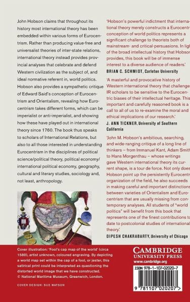 John Hobson claims that throughout its history most international theory has been embedded within various forms of Eurocentrism. Rather than producing value-free and universalist theories of inter-state relations, international theory instead provides provincial analyses that celebrate and defend Western civilization as the subject of, and ideal normative referent in, world politics. Hobson also provides a sympathetic critique of Edward Said's conceptions of Eurocentrism and Orientalism, revealing how Eurocentrism takes different forms, which can be imperialist or anti-imperialist, and showing how these have played out in international theory since 1760. The book thus speaks to scholars of international relations and also to all those interested in understanding Eurocentrism in the disciplines of political science/political theory, political economy/international political economy, geography, cultural and literary studies, sociology and, not least, anthropology.