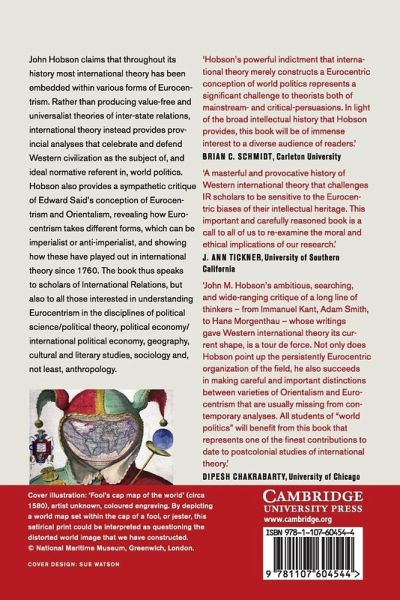 John Hobson claims that throughout its history most international theory has been embedded within various forms of Eurocentrism. Rather than producing value-free and universalist theories of inter-state relations, international theory instead provides provincial analyses that celebrate and defend Western civilization as the subject of, and ideal normative referent in, world politics. Hobson also provides a sympathetic critique of Edward Said's conceptions of Eurocentrism and Orientalism, revealing how Eurocentrism takes different forms, which can be imperialist or anti-imperialist, and showing how these have played out in international theory since 1760. The book thus speaks to scholars of international relations and also to all those interested in understanding Eurocentrism in the disciplines of political science/political theory, political economy/international political economy, geography, cultural and literary studies, sociology and, not least, anthropology.
