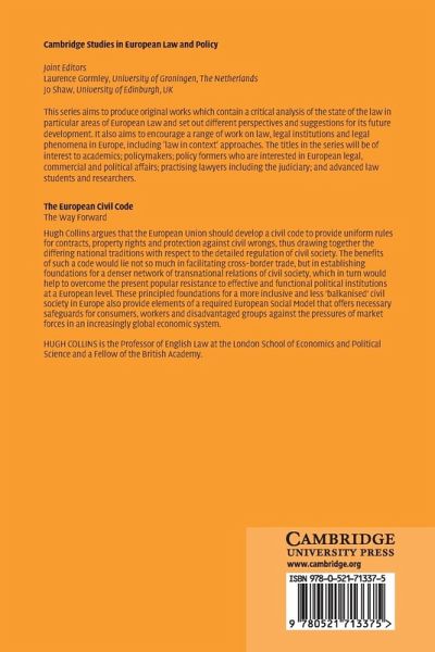 Hugh Collins argues that the European Union should develop a civil code to provide uniform rules for contracts, property rights and protection against civil wrongs, thus drawing together the differing national traditions with respect to the detailed regulation of civil society. The benefits of such a code would lie not so much in facilitating cross border trade, but in establishing foundations for a denser network of transnational relations of civil society, which in turn would help to overcome the present popular resistance to effective and functional political institutions at a European level. These principled foundations for a more inclusive and less balkanised civil society in Europe also provide elements of a required European social model that offers necessary safeguards for consumers, workers and disadvantaged groups against the pressures of market forces in an increasingly global economic system.