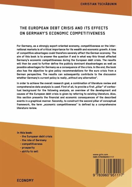 For Germany, as a strongly export-oriented economy, competitiveness on the international markets is of critical importance for its wealth and economic growth. A loss of competitive advantages could therefore severely affect the German economy. The aim of this book is to answer the question if and in what way this threat affected Germany's economic competitiveness during the European debt crisis. The results will then be used to further define the publicly dominant disadvantages as well as possible advantages for Germany as a consequence of the crisis. In the end, the book also has the objective to give policy recommendations for the euro crisis from a German perspective. The results can subsequently contribute to the discussion whether Germany's current policy is really "without any alternative".In order to achieve the overall research goal, a combination of literature review and comprehensive data analysis is used. First of all, to provide a first "pillar" of contextual background for the following analysis, an overview of the development and causes of the European debt crisis is given by referring to existing literature. Also, this section presents the financial and economic consequences of the described events in a graphical manner. Secondly, to construct the second pillar of conceptual framework, the term "economic competitiveness" is defined by a comprehensive literature review. Emphasis is put upon the concept of "ability to sell" and the measurement method of the country rankings while a short overview of other concepts is also provided. Finally, in combining theory and practice, an in-depth data-based analysis of the development of Germany's economic competitiveness is given. With the help of various publicly available data sources, Germany's ability to sell and other competitiveness metrics are tracked and elaborated on over the last centuries, with a special emphasis on the timeframe of the European debt crisis. Furthermore, comparisons to othercountries are made to emphasize characteristics unique to Germany. Ultimately, the results of the analyses are evaluated and concluded in a short discussion about Germany's current policy in the euro crisis.In this book:- the European debt crisis; - the role of Germany; - competitiveness; - prosperity; - ability to sell