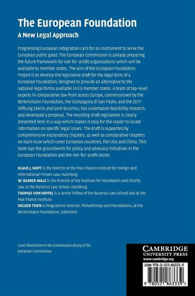 The aim of the European Foundation Project is to develop the legislative draft for the legal form of a European Foundation. A team of experts in comparative law from across Europe has undertaken feasibility research, and developed a proposal. The resulting draft legislation is clearly presented here in a way which makes it easy to locate information on specific legal issues. The draft is supported by comprehensive explanatory chapters, as well as comparative chapters on each issue.