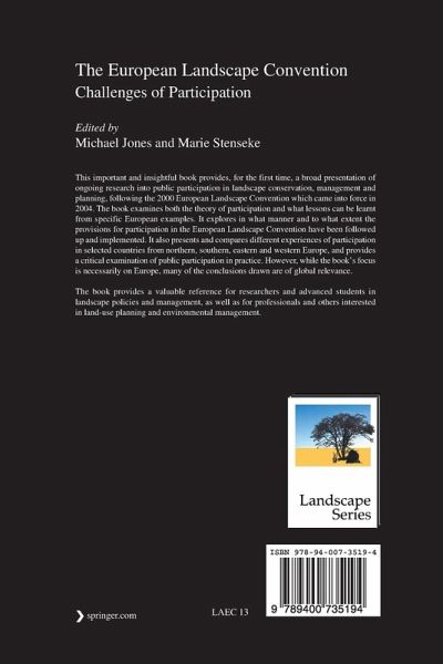 Preface.- Contributing authors.- Introduction.- The issue of public participation in the European Landscape Convention, Michael Jones and Marie Stenseke.- Part I: Implementing participation.- European landscape and participation - rhetoric or reality?, Michael Jones.- The Dutch approach: Public participation and the role of NGOs and local authorities in the protection, management and development of cultural landscapes in the Netherlands, Henk Baas, Bert Groenewoudt, and Edwin Raap.- The participatory dimension in nature conservation processes: Examples of ideology and practice from Norway, Karoline Daugstad.- The implementation of the European Landscape Convention in Poland; Anna Majchrowska.- 6. Landscape regulation in regional territorial planning: A view from Spain; Berezi Elorrieta and Dolores Sánchez-Aguilera.- 7. In search of the Greek landscape: A cultural geography, Theano S. Terkenli.- Part II: Participatory methods and case studies.- 8. Landscape in participatory processes: Tools for stimulating debate on landscape issues? A conceptual and methodological reflection from research-action projects in France, Yves Michelin, Thierry Joliveau, and Claire Planchat-Héry.- 9. The Prospective Vision: Integrating the farmers' point of view into French and Belgian local planning; Claire Planchat-Héry.- 10. 'Landscape Quality Objectives' for remote rural landscapes in Portugal: Addressing experts' and stakeholders' perspectives on future developments; Isabel Loupa Ramos.- 11. Landscape perception through participation: Developing new tools for landscape analysis in local planning processes in Norway; Morten Clemetsen, Erling Krogh, and Kine Halvorsen Thorén.- 12. Participation within the landscape of the River Dart Catchment, Devon, England; Neil Spencer.- 13. Regional Landscape Strategies and public participation: Towards implementing the European Landscape Convention in Sweden; Anders Larsson, Anna Peterson, Elinor Bjärnborg, Christine Haaland, andMats Gyllin.- 14. The role of information, knowledge and acceptance during landowner participation in the Natura 2000 designations: The cases of Otepää and Kõnnumaa, Estonia; Monika Suskevics and Mart Külvik.- Conclusion.- 15. Benefits, difficulties and challenges of participation under the European Landscape Convention; Marie Stenseke and Michael Jones.- Index.
