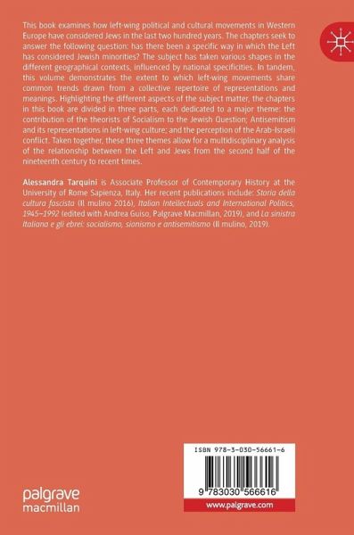 1. Antisemitism and the French left between culture and politics: a long-term perspective- Michel Dreyfus.- Part I: The Theorists of Socialism.- 2. Religion et Politique: Saint-Simonians, Jews and the Jewish Paradigm- Alberto Scigliano.- 3.Cesare Lombroso, the "blast of antisemitism" and "socialist neo-Christianity"- Xavier Tabet.- 4.Anarchists and the Jews: Bernard Lazare's analysis of antisemitism- Stefania Mazzone.- 5. Wilhelm Marr and the Left in Germany: the birth of modern antisemitism in Imperial Germany- Didier Musiedlak.- 6. Sorel and the Jewish Question- Luca Basile.- 7. Corrupter of the Working Class. Italian Revolutionary Syndicalism and the antisemitic Critics of Democracy- Enrico Serventi Longhi.- 8. Antonio Gramsci and the Jewish Question- Andrea Pinazzi.- Part II: The Representation of antisemitism.- 9. Adorno's Interpretation of antisemitism and the Dialectics of Civilization- Stefano Petrucciani.- 10. Left-wing intellectuals and the representation of the Shoah in Italy: from the Second World War to the 1970s, between anti-fascism and the Frankfurt School- Alessandra Tarquini.- 11. Avanti! and the memory of the Shoah (1961-1967)- Bianca Dematteis.- 12. Umberto Terracini: his commitment to the memory of the Shoah, his relationship with Israel and his fight against antisemitism- Marta Nicolo.- 13. "A Nostalgia for Totality": Cesare Cases between antisemitism, the Jewish Question, and Israel- Simon Levis Sullam.- Part III: The Israel Question.- 14.The Italian Communist Party and the "Israel Question" during the First Years of the Cold War: Toward a Historical Semantics of Communist Anti-Zionism Andrea Guiso.- 15. The Italian Communists and Socialists' Reading of the Six-Day War and Its Consequences- Claudio Brillanti.- 16. On the Continued Relevance of an Austrian left-wing intellectual: Jean Améry's critique of leftist Anti-Zionism- Lars Fischer.- 17. Jewish left-wing intellectuals in Postwar Germany: the case of Micha Brumlik and the Israeli Palestinian conflict between antisemitism and Anti-Zionism- Anna Corsten.- 18. The French radical Left ant the Jews: the influence of the Arab-Israeli conflict on Anti-Zionism within the French radical Left between 1967 and the early 1980s- Thomas Maineult.- 19. The Italian radical Left and the Arab-Israeli Question (1969-1977)- Gregorio Sorgonà.- 20. The Israeli-Palestinian conflict seen by the Spanish left from the Gulf War until today- Manuelle Peloille.